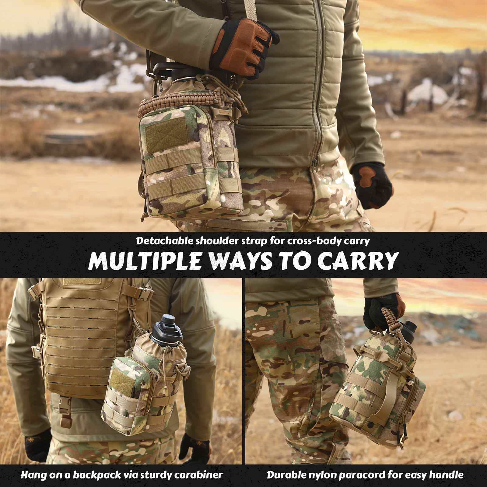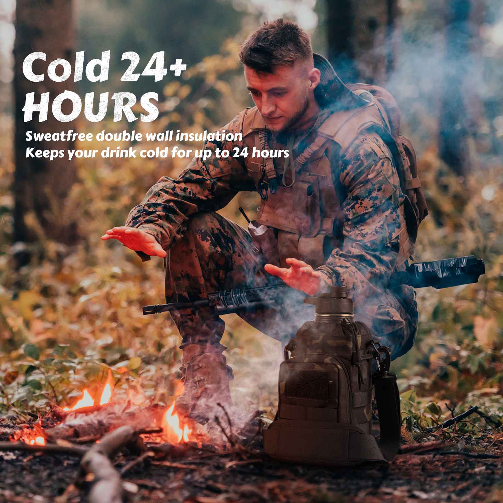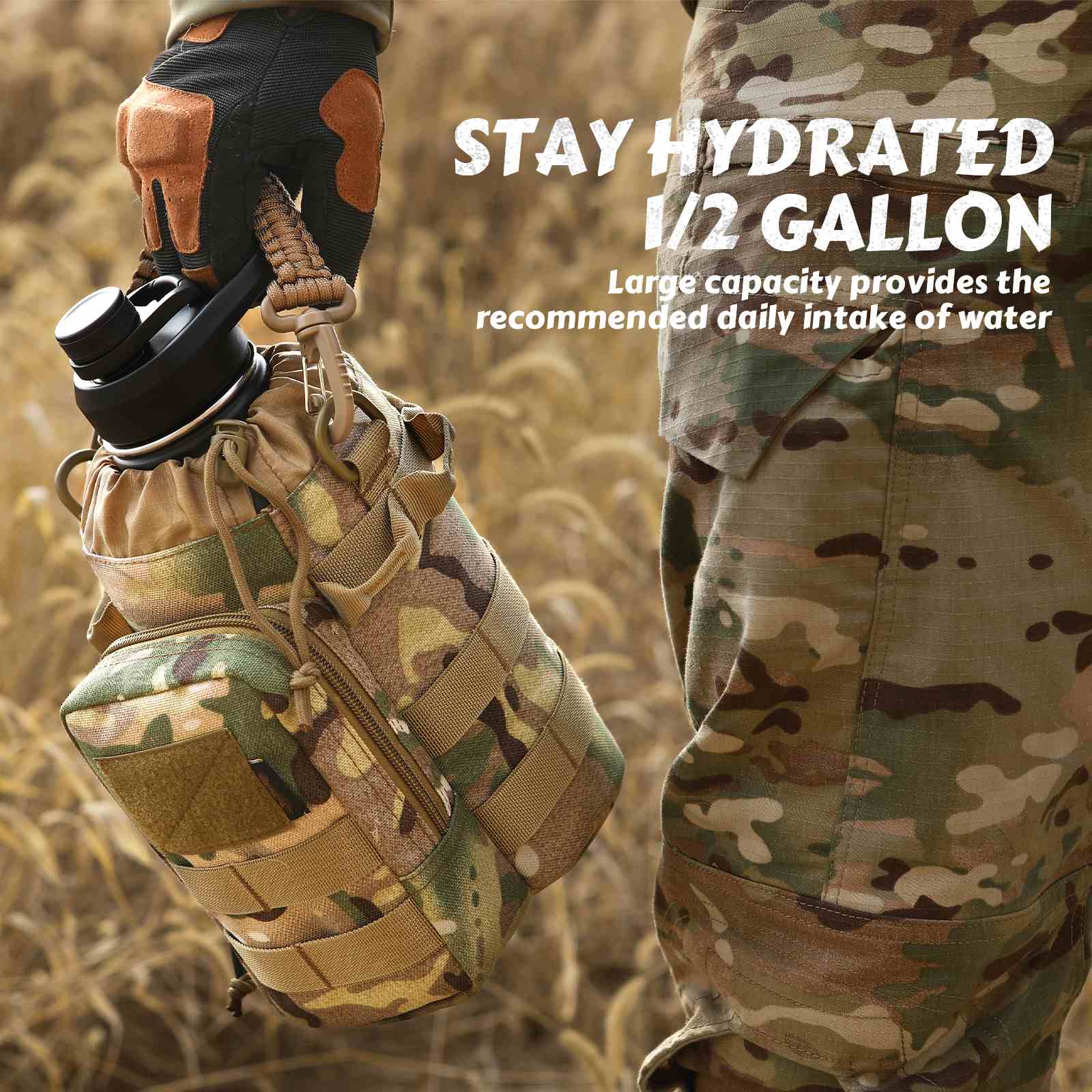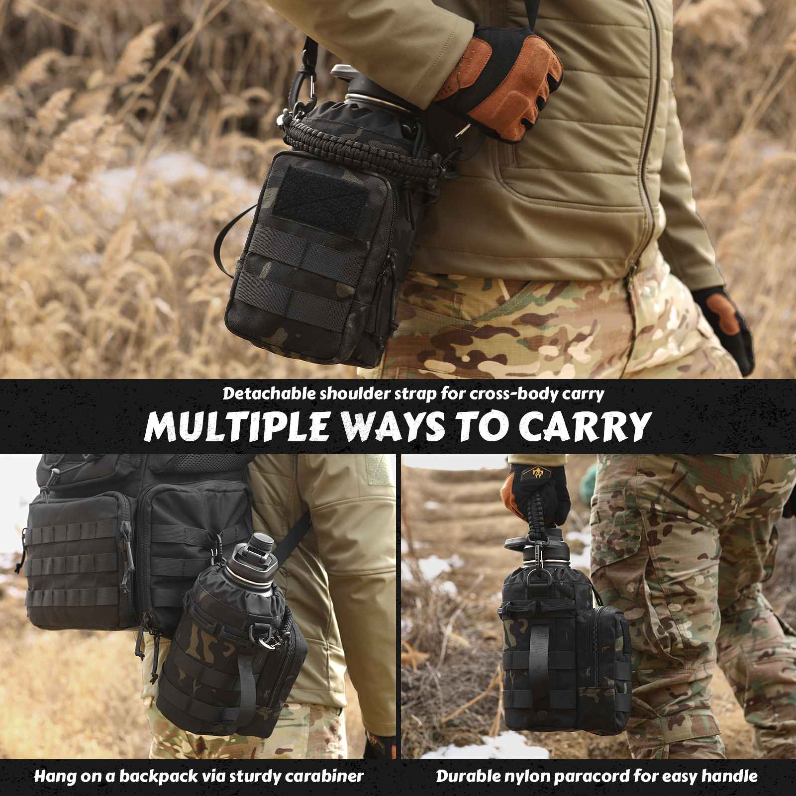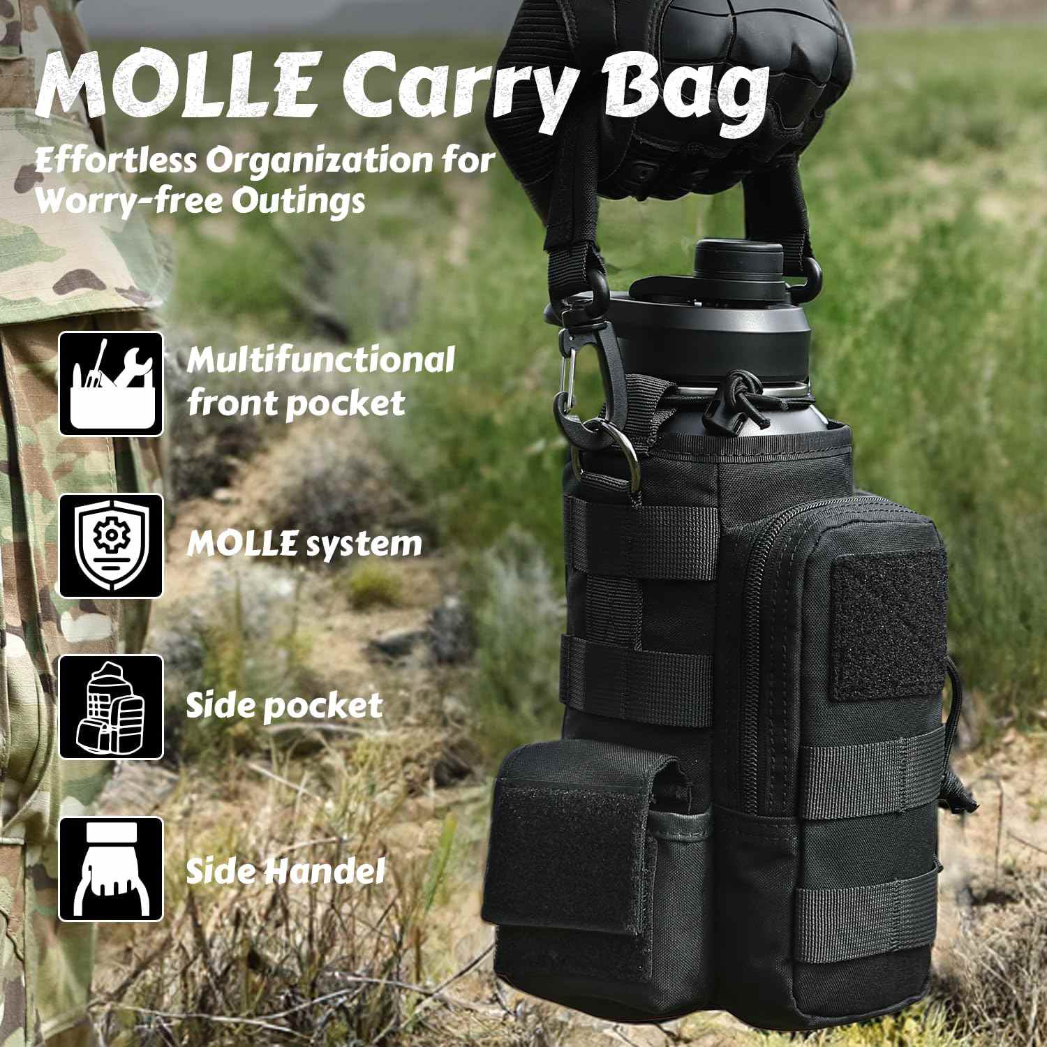 Votagoo 64Oz Half Gallon Stainless Steel Insulated Tactical Water Bottle with Metal Military Water Bottle Tactical Carrier Bag